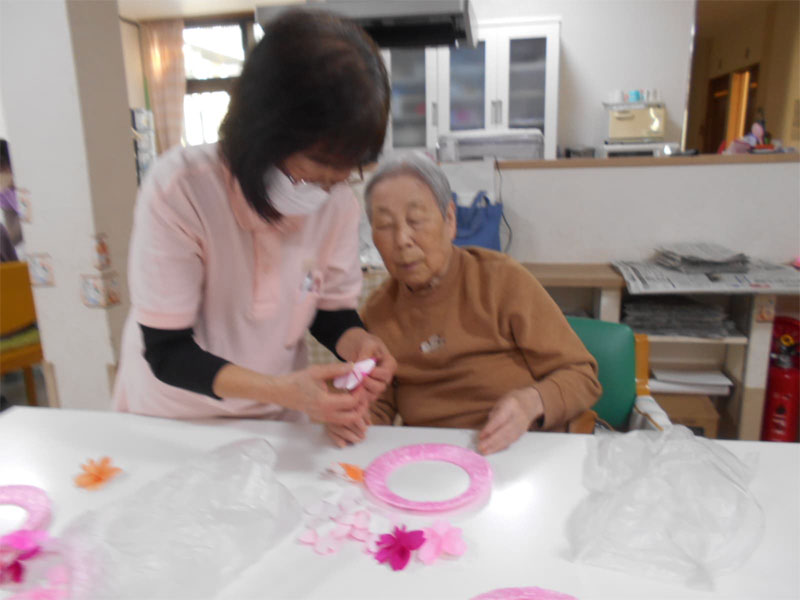 | ・桜のリース作り(グループホームほほえみ) |